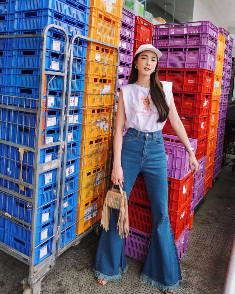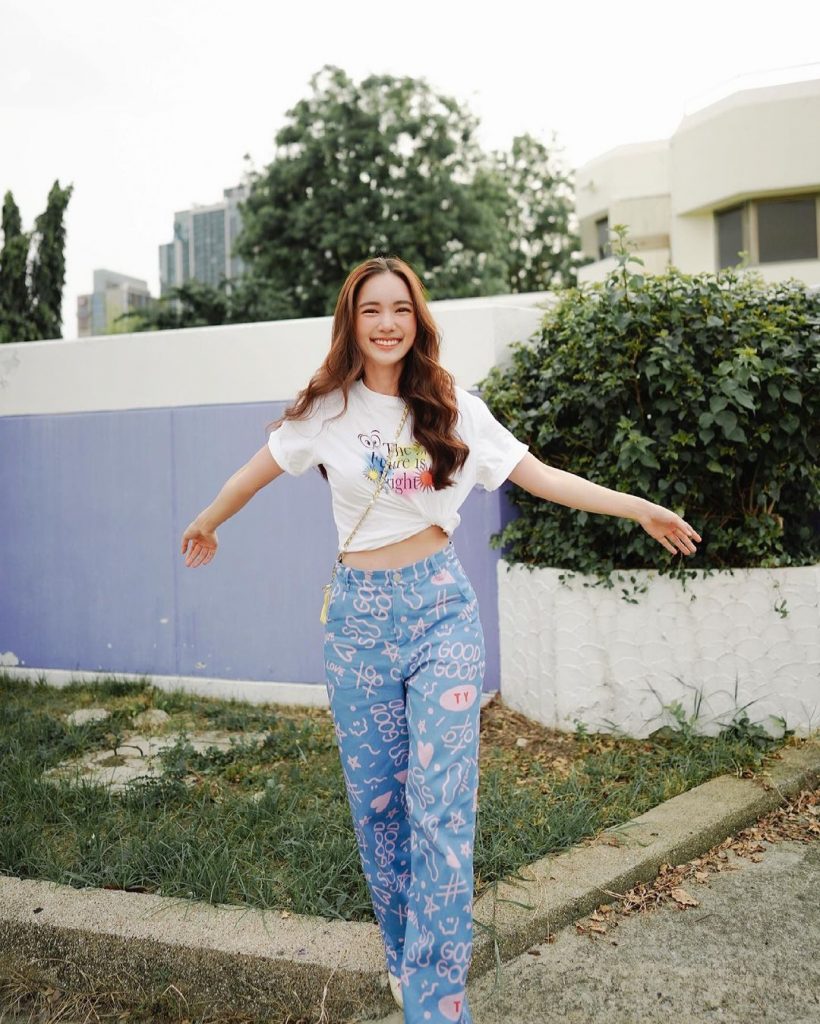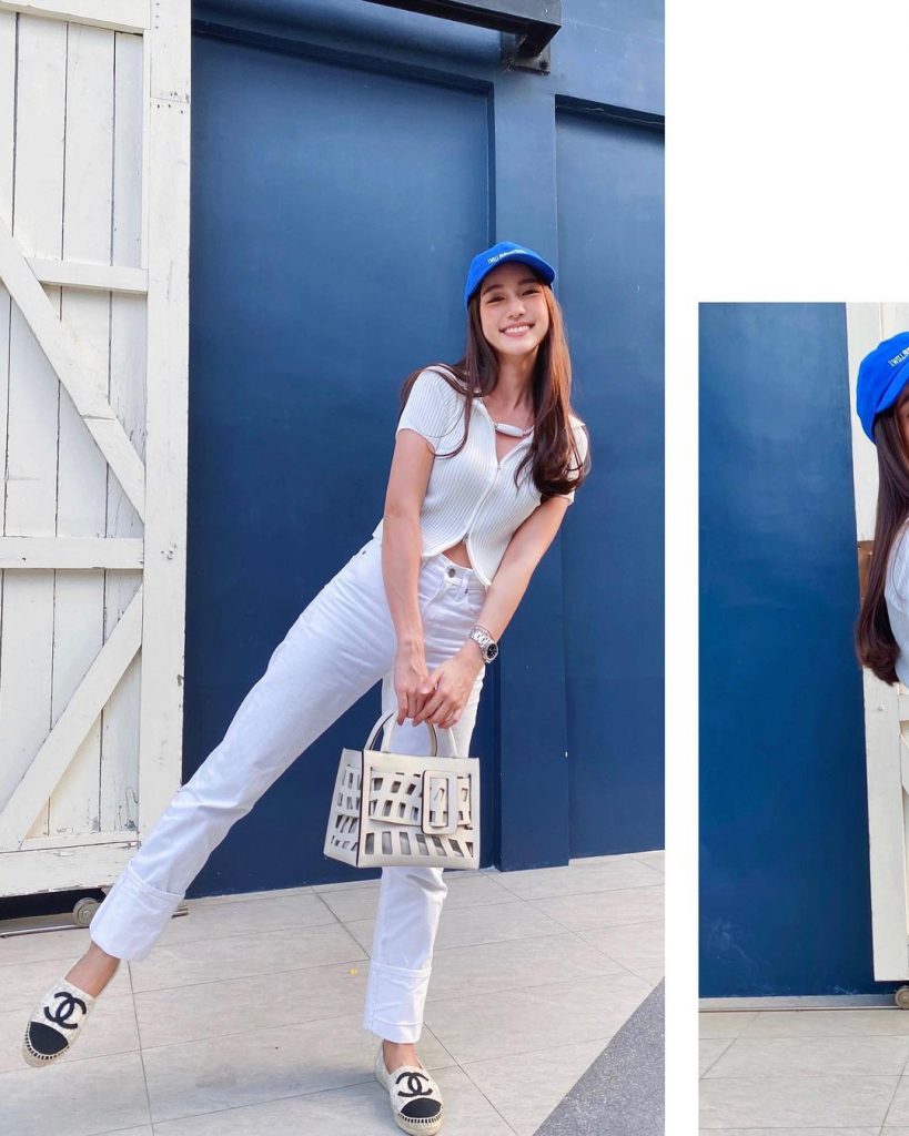 3. Cuma pakai kaus dan celana biru, gaya simpel Bua Nalinthip ini tetap terlihat stylish.