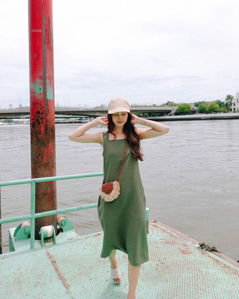 6. Tampil simpel dengan dress hijau saat jalan-jalan, gaya Bua Nalinthip ini bikin doi masih cocok dikira ABG.